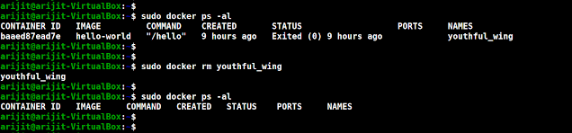 sudo docker ps -aThis command displays a list of all docker CONTAINERS on our local machine. There is currently no container in our local machine.